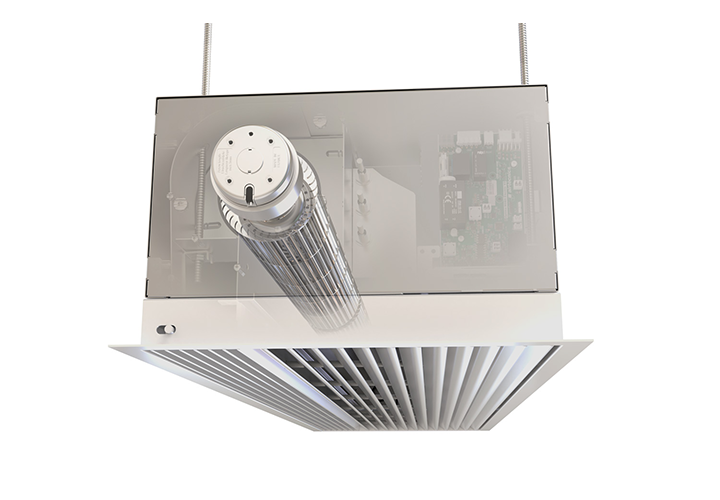 Luftridån har ett inbyggd kretskort och levereras installationsfärdig ”Plug and play”, och ansluts enkelt mot styrenheten med den bipackade lågvolts modularkabeln.